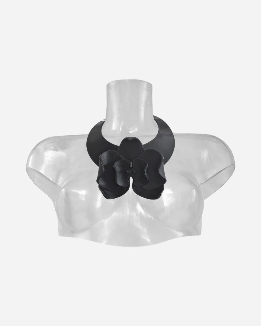 From the Malum Orchis series of evil flowers, this sculpted leather necklace coils around the throat like a venomous bloom in mid-lure. Precision-moulded and sinisterly elegant, it whispers of forbidden botany and power disguised as beauty.